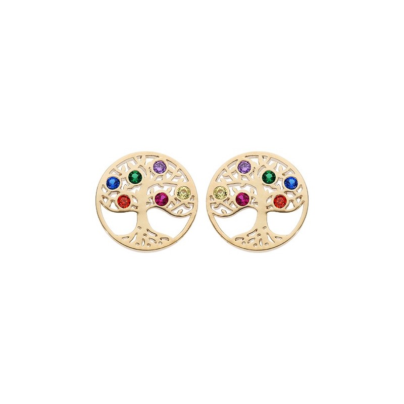 Boucles oreilles plaqué Or arbre de vie strass